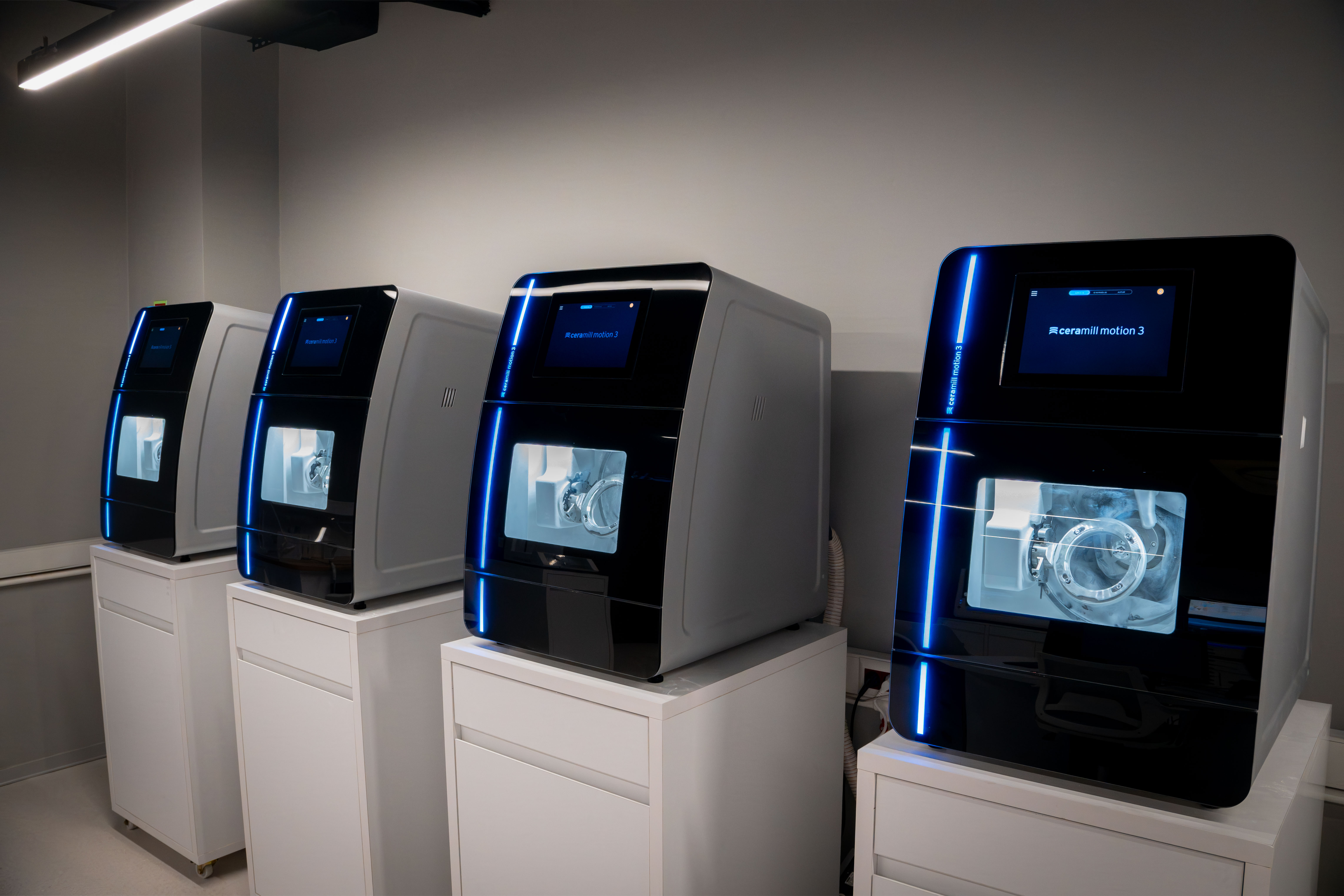 Laboratuvarımızda üretim gücünü; Coritec 350i Pro, 350i Loader Pro, VHF K5+, iMes-iCore 150i DRY ve Ceramill Motion 2 & 3 gibi sektörün en güvenilir CAD/CAM sistemleriyle sağlıyoruz. Farklı materyallerde yüksek hassasiyet, tekrarlanabilir kalite ve hızlı üretim sunan toplam 16 CNC makinemiz, her vaka için kusursuz sonuçları garanti eden tam dijital bir üretim hattı oluşturur.